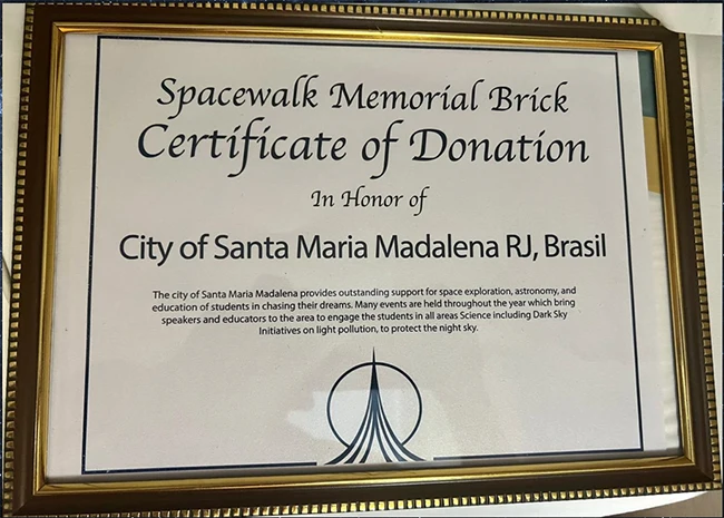 A cidade de Santa Maria Madalena, no Rio de Janeiro, recebeu uma homenagem especial da NASA graças à indicação de Gabe Gabrielle, ex-engenheiro da agência. Uma placa foi instalada no prestigiado SpaceWalk of Honor, localizado no Centro de Visitantes do Kennedy Space Center, na Flórida, reconhecendo a contribuição de Santa Maria Madalena na educação sobre astronomia e astronáutica. Esta honra celebra os pioneiros do programa espacial dos EUA e reforça o legado de cidades como Madalena, que inspiram o conhecimento e o desenvolvimento científico.